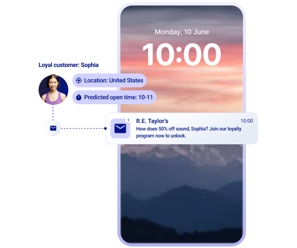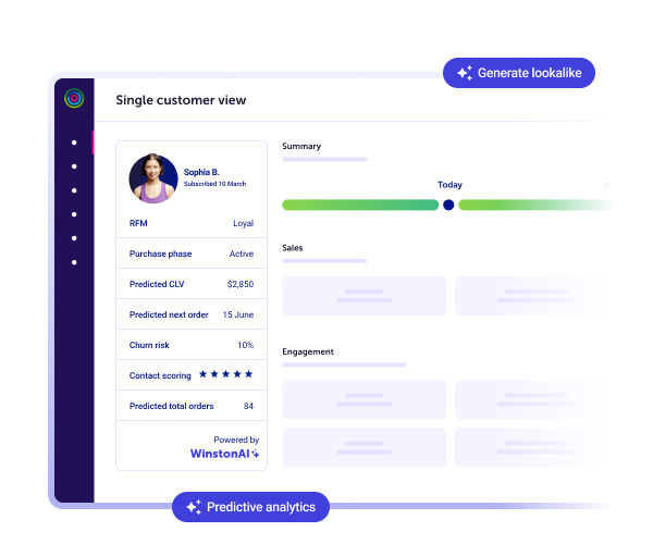 Predictive analyticsForecast next purchase date, churn risk and customer lifetime value to perfect campaign timing.