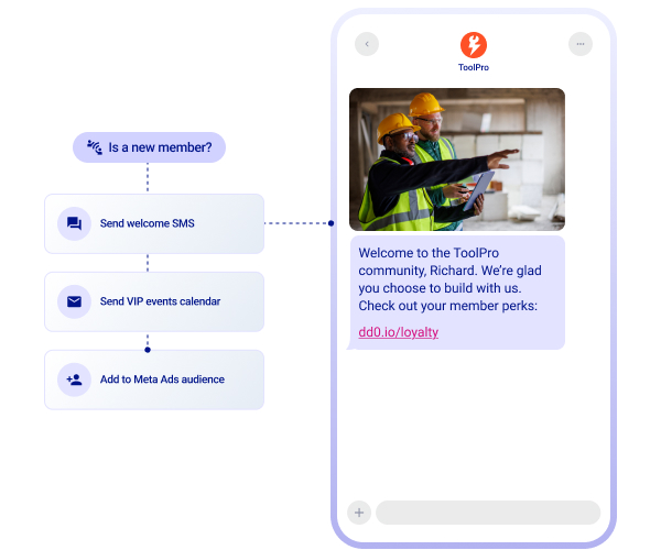 Set up welcome and milestone programs that show customers you value their business from day one and beyond. Start real conversations using SMS, WhatsApp and live chat so buyers feel supported, not sold to.