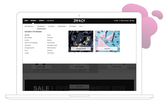 Zee & Co puts the spotlight on specific brands across their navigation bars as part of their eCommerce personalization strategy. Since customers tend to prefer brands or products they have seen multiple times, harness the power of familiarity for returning visitors by tailoring the brand suggestion to the customer’s most browsed or purchased brand.