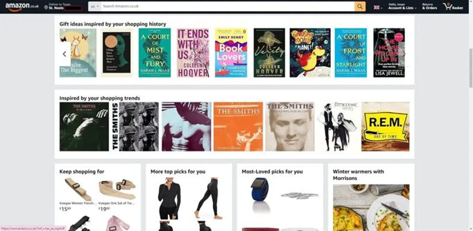 - Gift ideas inspired by your shopping history: Amazon analyzes the customers past purchases and browsing behavior to suggest relevant gift options, making it easier for customers to find presents for others.