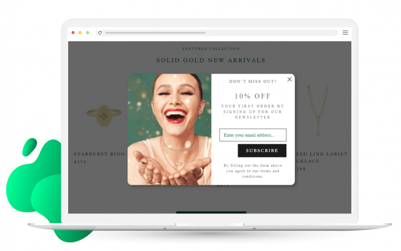 In the example below, you can see why. There is a clear incentive that grabs the customers’ attention, and the branding is on point. The “Don’t miss out!” message increases feelings of FOMO, and there are clear terms and conditions that don’t take up too much space on the popover.