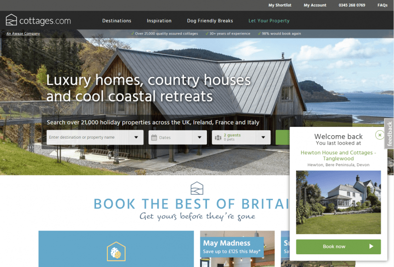 Show new site users an image that clearly demonstrates what you have to offer, and builds trust. Even if you don’t yet know the customer’s preferences, you can personalize banners based on the individual’s context. For instance, their location, local weather, time of day or price affinity.
