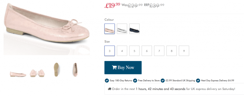 Countdown timers increase urgency in promotional emails and across the website. They can also help to boost shopping recovery emails where shoppers abandoned a sale item.