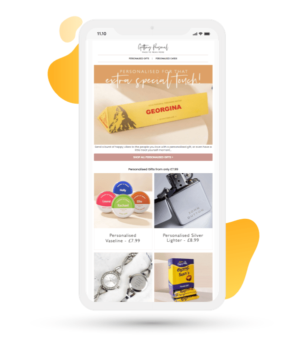 Getting Personal tested the effects of dynamic name personalization on their emails with a series of A/B tests. The results showed that with dynamic name personalization, click-through rates increased by 15% and conversion rates increased by 7%. What’s more, they saw a 37% uplift in sales.