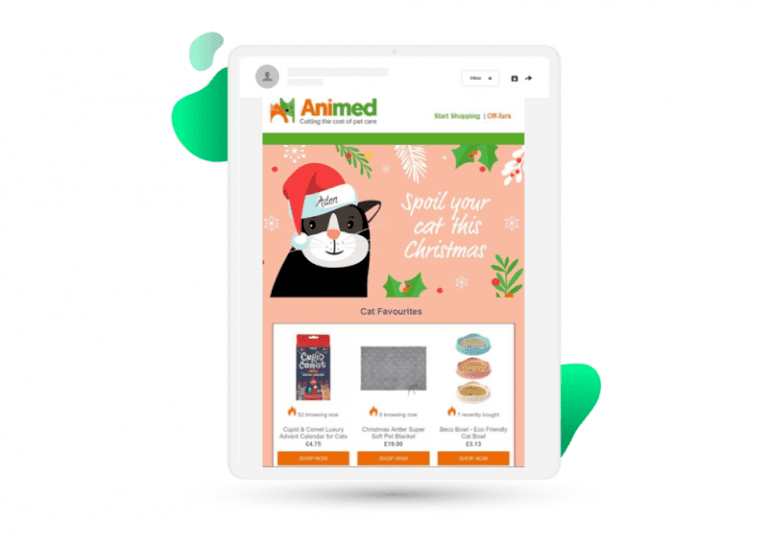 Pet retailer Animed Direct captures zero-party data on the type of pet their shoppers have, and then uses that data to segment their email subscribers. The retailer created two versions of their Christmas email banner – one for dog owners and another for cat owners with images of each respective animal – and sent the relevant email to each segment. This allows Animed Direct to really catch each subscriber’s attention with dynamic content that is most likely to resonate with them.