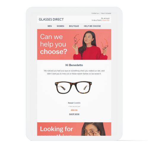 Looking for ways to bring the same innovative focus to its marketing in order to improve customer engagement and drive sales across all its brands, the company was delighted when its trusted Email Service Provider Adestra recommended Fresh Relevance. “We were reviewing several options but only Fresh Relevance with its real-time personalization platform for email, mobile and web, was able to meet all our requirements,” explains Benedetto Ferretti, Senior CRM Database Executive at MyOptique Group. “What’s more, because the platform was already tightly integrated with Adestra, it gave us the confidence that we could make quick progress.”