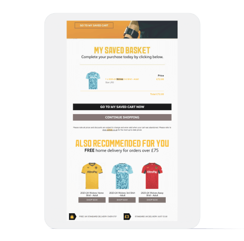 Wolverhampton Wanderers Football Club recovers lost cart abandonment revenue and increases average order value.