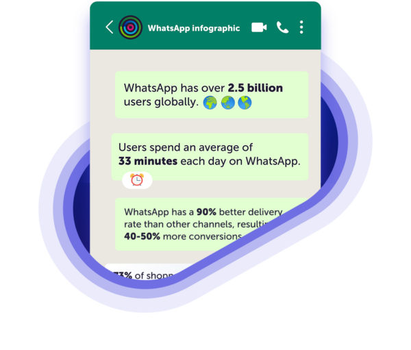 Convert on the world’s most popular messaging app. Added into your existing channel mix, WhatsApp helps you create positive experiences at every touchpoint.