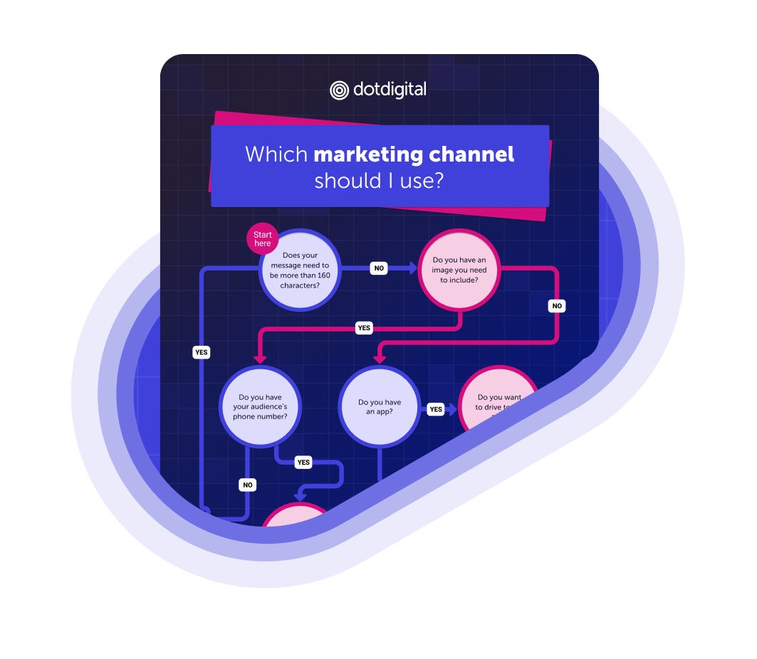 Follow the flowchart to see which marketing channel fits your campaign and the engagement rate you can expect using our 2026 benchmarks.