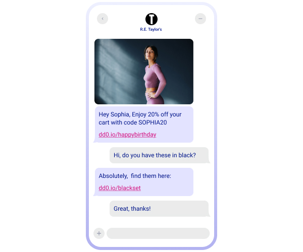 Start conversations, collect feedback, and answer questions instantly. Create memorable moments with every text for deeper engagement and more conversions.